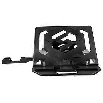 Adjustable Ergonomic Laptop Stand in Black Aluminum Alloy for Home Use with Phone Holder and Airflow Design