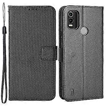 Anti-fall Case For Nokia C21 Plus Diamond Texture Pu Leather Wallet Scratch-resistant Phone Stand Case With Handy Strap