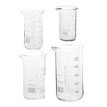 Beakers Glass Highly Clear Measuring Beakers For Laboratory Experiments Transparent 100ml 150ml 250ml 500ml 4Pcs