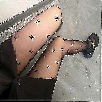 Black Fishnet Tights with Double Letter Pattern for Party and Club Events Slim Fit Design