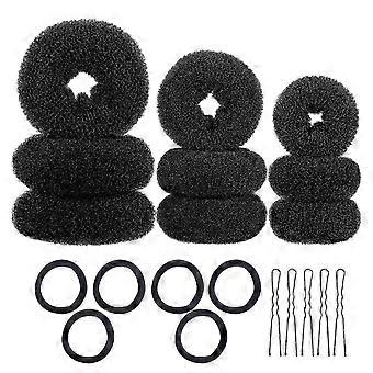 Black Hair Styling Kit with Donut Bun Makers Elastic Bands U-shaped Clips for Hair Use 3 Sets