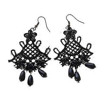Black Lace Dangle Earrings with Beads for Women's