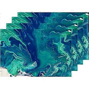 Blue Green Abstract Marble Placemats, Paint Table Mat Linen Burlap Washable Double-Deck Heat Insulation for Dining Table Kitchen Table Set of 4 (12 x
