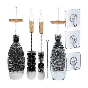 Bottle Brush Cleaning Brush, Pack Of 4 Bottle Brushes And 3 Organising Hooks Bottle Cleaner For Was