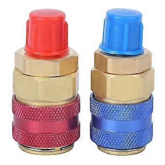 Brass Air Conditioning Quick Coupler Connector for R134A AC High Low Pressure, Red and Blue Side Adapter for HVAC Systems