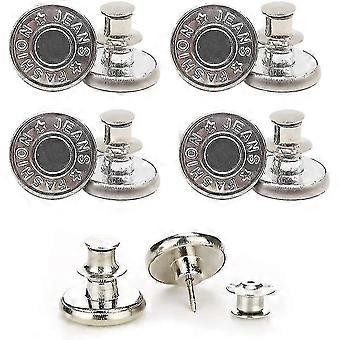[Package Include] 4 pcs replacement button pins for pants.Button surface diameter is 17mm.^[High-Quality Material] Instant jean button made of zinc alloy which is sturdy, durable and not easy to get erosion, not easy to bend and damage under finger pressure.^[Easy to Use] These button pins for jeans are very easy to use. No-sew, no tool requrie, you can install the buttons easily with your hands.^[Card Slot Design] This buttons with Unique card slot design, can not fall off when stuck,And they will get stuck for a long time. Removable and reusable, enabling reusable use.These jean buttons are also an excellent replacement for missing buttons.^[Widely Used] This button pins can adjust the size of your pant waist when it's too loose in a second, and also can be decorations for your hats, belts, windbreakers, shirts, trousers, backpacks, cotton clothes, shoes,suits, trousers, coats, shirts etc.It is also very suitable for DIY handmade by the elderly, adults and children.