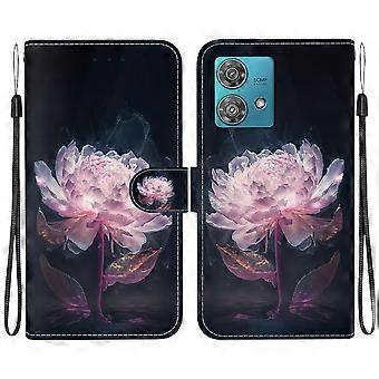 Case For Motorola Edge 40 Neo Painted Wallet Cover with Card Slots Compatible with Motorola Edge 40 Neo Case - Pink Flower