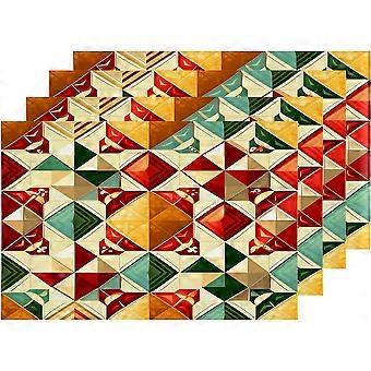 Christmas Abstract Patchwork Placemats, New Year Red Yellow Geometric Table Mat Linen Burlap Washable Double-Deck Heat Insulation for Dining Table Kit