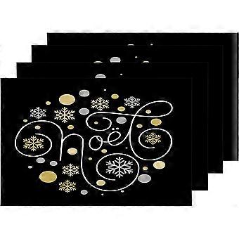 Christmas Snowflake Placemats, Star Monogram Joyeux Noel French Merry Table Mat Linen Burlap Washable Double-Deck Heat Insulation for Dining Table Kit