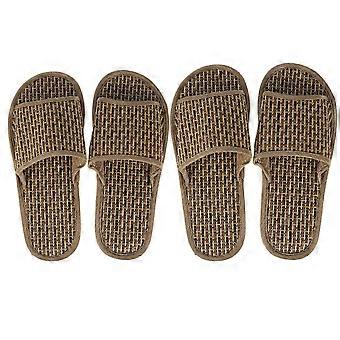 Coffee Bamboo Straw Slippers Open-Toe Slippers for Home Use 2Pairs