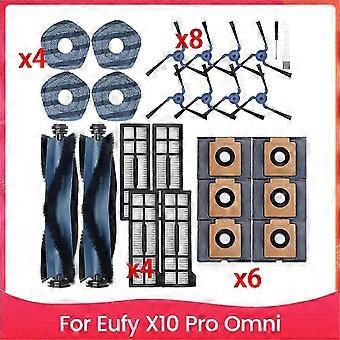 Compatible with X10 Pro Omni:2 Main Brushes, 4 Mop Pads, 8 Side Brushes, 4 HEPA Filters, 6 Replaceme