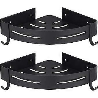 corner shower shelf black without drilling bathroom storage shower soap holder,no rust proof aluminum set of 2 with hooks