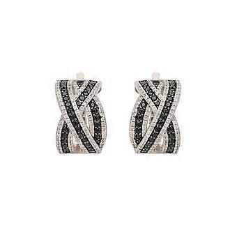 Crossover Hoop Earrings Black Cz Silver