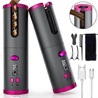 Cordless Auto Hair Curler, Automatic Curling Iron with LCD Display Adjustable Temperature & Timer, Portable Rechargeable Rotating Ceramic Barrel Curli
