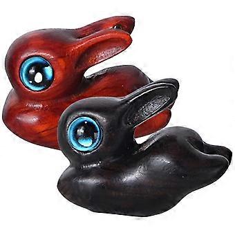 Cute Animal Sculpture Retro Rabbit Statue Handicraft Item Assorted Color Wood Material 2Pcs