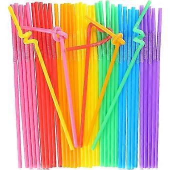 Disposable Color Straws, 100 Count Flexible Straws, Extra Long Straws Party Decorations, Mixed Colors