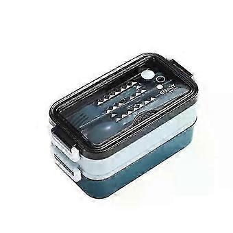 Double-Layer Portable Lunch Box with Compartments, Includes Fork, Chopsticks, and Spoon for Picnics