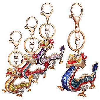 Dragon Year Keychain 4 Pcs Zodiac Decor Assorted Color Features Metal Construction
