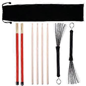 Drum Sticks Set Bamboo Brush for Drum Use 2Sets with Steel Wire Brush