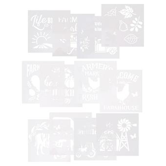Durable Drawing Stencil 12Set For DIY Projects 15.5X15.5cm Reusable Craft Stencils For Wall Fabric Floor Decor
