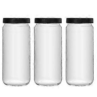 Durable Glass Drinking Bottle Set of 3 with Airtight Plastic Lid