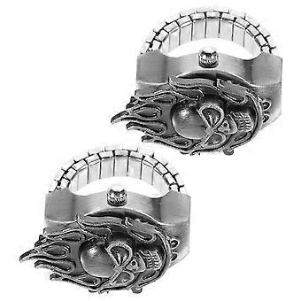 Elasticity Finger Watch Ring For Daily Use Black Retro Style Time Telling 2Pack