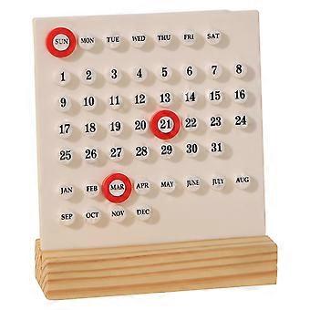 Elegant Desktop Acrylic Permanent Calendar with Wooden Stand with 3 Rings Date Record for Home Office Classroom Decors White