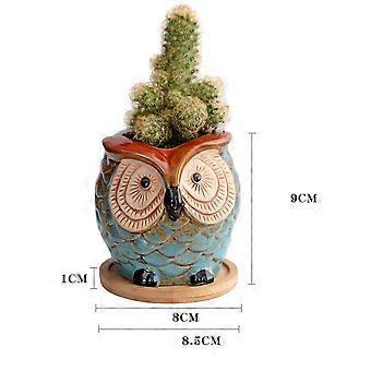 Fleshy Flower Pot Ceramic Owl Style for Home Use 4Pcs with Base