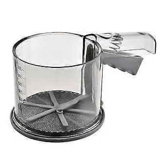 Flour Sifter Clear Scale Fan-shaped Rotary Blade Press Type with Bottom Cover Hand Press Filter Powdered Sugar Sieve Home Supply
