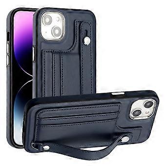 For iPhone 15 Shockproof Leather Mobile Phone Case with Wrist Strap
