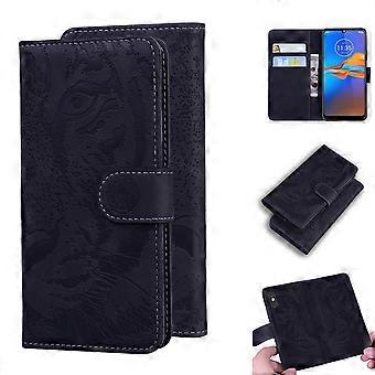 For Motorola Moto E6 Plus Tiger Embossing Pattern Horizontal Flip Leather Case with Holder & Card Slots & Wallet