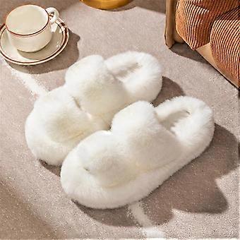 Fuzzy Slippers Women Furry Cross Band House Slippers Open Toe Slipper Slides Rabbit Fur With Memory Foam Insole