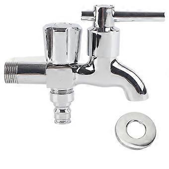G1/2in Single Cold Double Heads Faucet 1 Inlet 2 Outlet Dual Use Washing Machine Water Tap