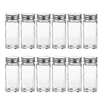 Glass Spice Jars with Labels Empty Square Spice Bottles Containers, Condiment Pot - Shaker Lids and