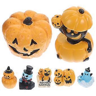 Halloween Mini Pumpkin Figurines Set of 7 – Festive Table Decorations for Home or Classroom