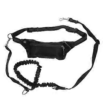 Hands Free Dog Leash Waist Pack with Elastic Bungee and Storage Pouch for Running Black 1.5 inch wide