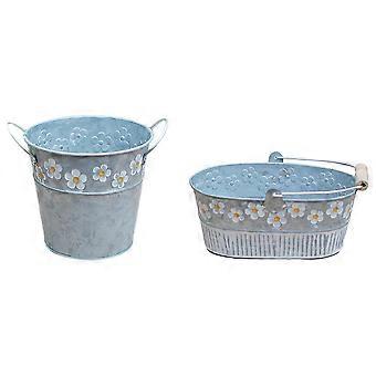 Iron Art Flower Buckets Flower Planters for Storage Use 6Pcs Silver Container