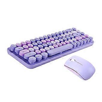 Keyboard Mouse Combo Mixed Color 2.4G Wireless Keyboard Mouse Set Circular Suspension for Key Cap for PC Laptop Purple