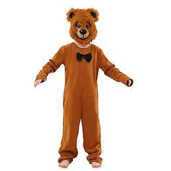 Kids Bear Costume Plush Headgear Mask and Zippered Jumpsuit and Tail Set for Carnivals and Theme Parties Halloween Props brown XL