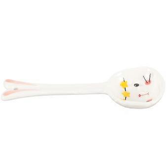 Lightweight Hand Painted Ceramic Spoon with Rabbit Pattern, Multi Use Soup and Porridge Spoon, Easy to Clean, Comfortable Grip Dining Spoon
