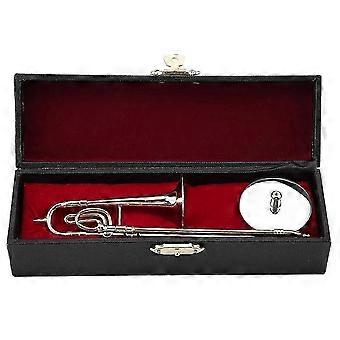 Miniature Trombone Replica with Stand and Case Gold Plated Instrument Model Musical Ornaments