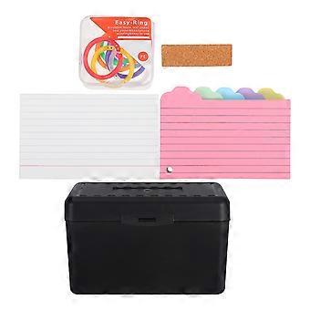 Multi-Function Index Card Organizer Box For Office Use With 3 Sets Of Memo Cards In Black Size 12.70X7.60X0.01CM For Note Organization