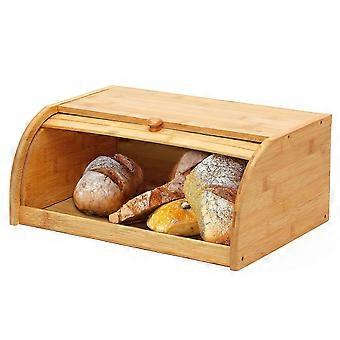 Natural Bamboo Bread Box with Roll-Top Lid, Easy Assembly Required for Fresh Bakery Storage