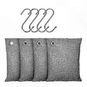 Natural Bamboo Charcoal Air Purifier - 4 Pack of 200g Odor Absorbers with Hooks for Freshening Spaces