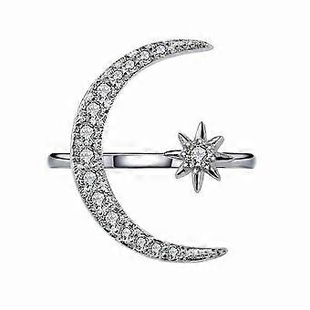 New Crescent Moon Star Ring, European American Style, 18k Plated, Exaggerated Open Engagement Ring