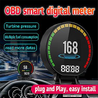 New P15 Digital Speed Hud Display Car Speedometer Obd2 Turbo Boost Pressure Meter Alarm Oil Water Temp Gauge Code Reader