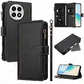 OnePlus 13 Leather Wallet Case with 9 Card Slots, Zipper, Stand & Wrist Strap Phone Cover