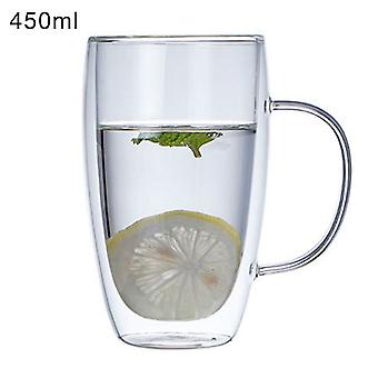 OuZhan Glass Cup Tasteless Heat Insulation Clear Double Layers Mug with Handle for Home