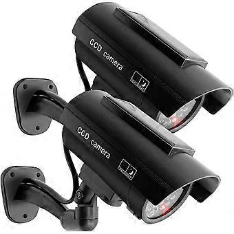 Pack of 2 Dummy Camera CCTV Dummy Surveillance Camera with Red Flashing LED Fake Security Camera - Black