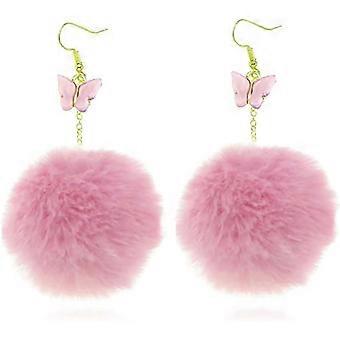 Plush Ball Butterfly Dangle Earrings for Women's